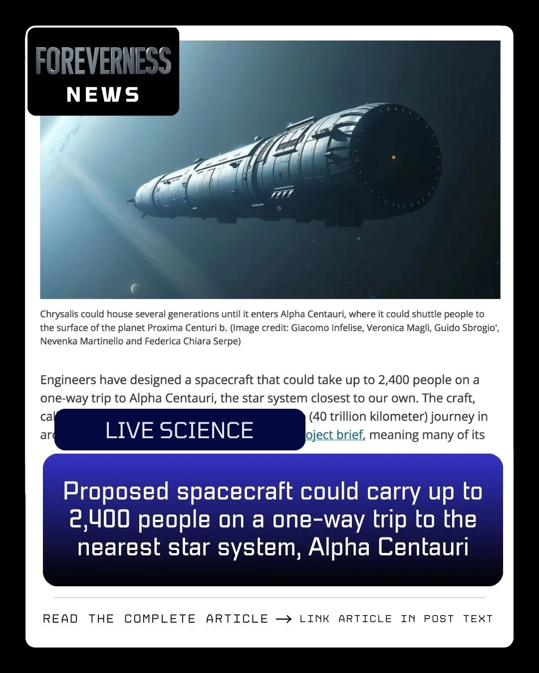 LIVE SCIENCE: “Proposed spacecraft could carry up to 2,400 people on a one-way trip to the nearest star system, Alpha Centauri” Oct 6 Written By Tantú Films COMPLETE ARTICLE LINK: https://www.livescience.com/space/space-exploration/proposed-spacecraft-could-carry-up-to-2-400-people-on-a-one-way-trip-to-the-nearest-star-system-alpha-centauri Tantú Films