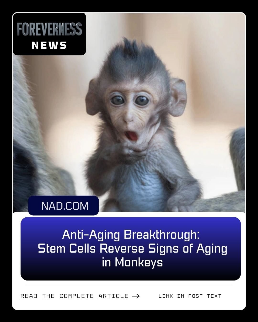 NAD.com : “Anti-Aging Breakthrough: Stem Cells Reverse Signs of Aging in Monkeys” Nov 16 Written By Tantú Films FULL ARTICLE:nad.com/news… Tantú Films