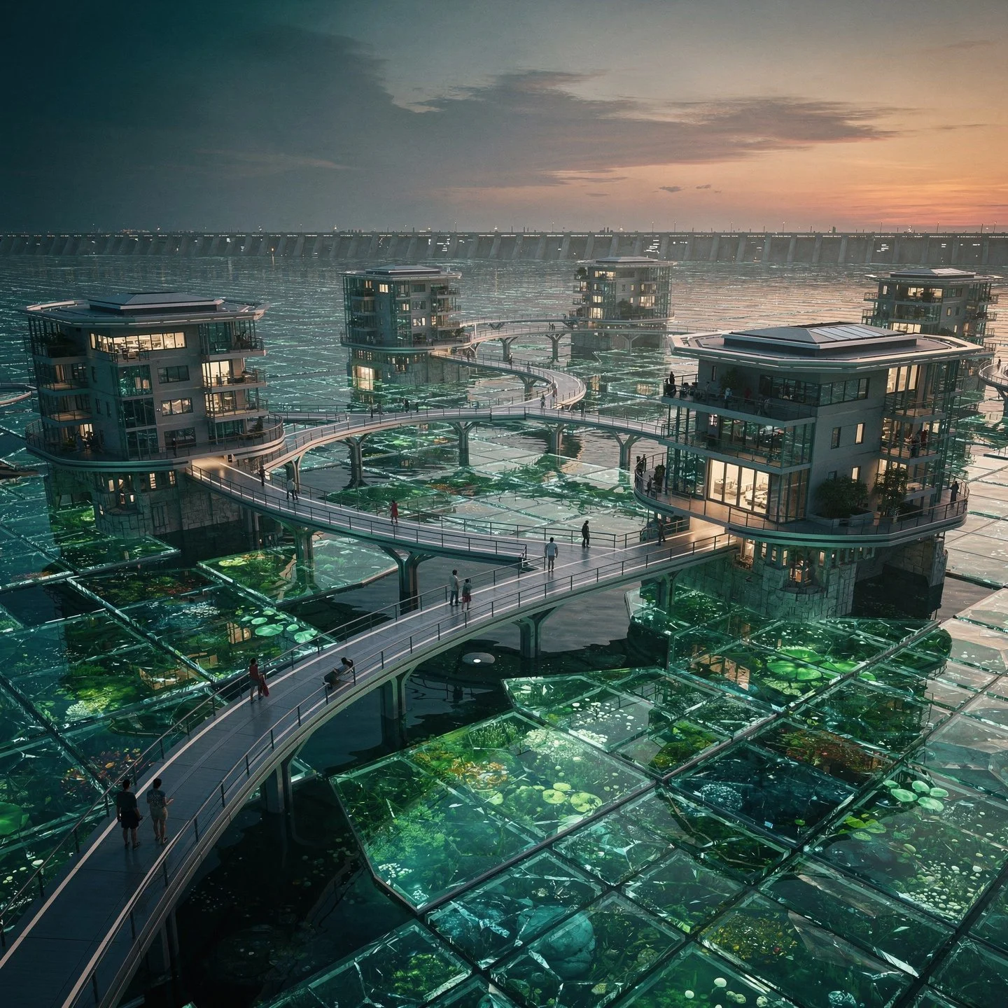 Floating in the Pacific Ocean, the world largest corporation, Shì, surrounded by energy dams, created a city in the largest sea-surface laminar farm on the planet. In it, scientists such as Constantina, work along engineers and automata to reproduce the flavours of nature inside the cultivating panels. Inside them a mixture of algae, fungi, and other cells, genetically modified, produce edibles of almost any desired characteristic. Anything that makes life a little bit more interesting than the jelly textured and artificially flavoured wasan.